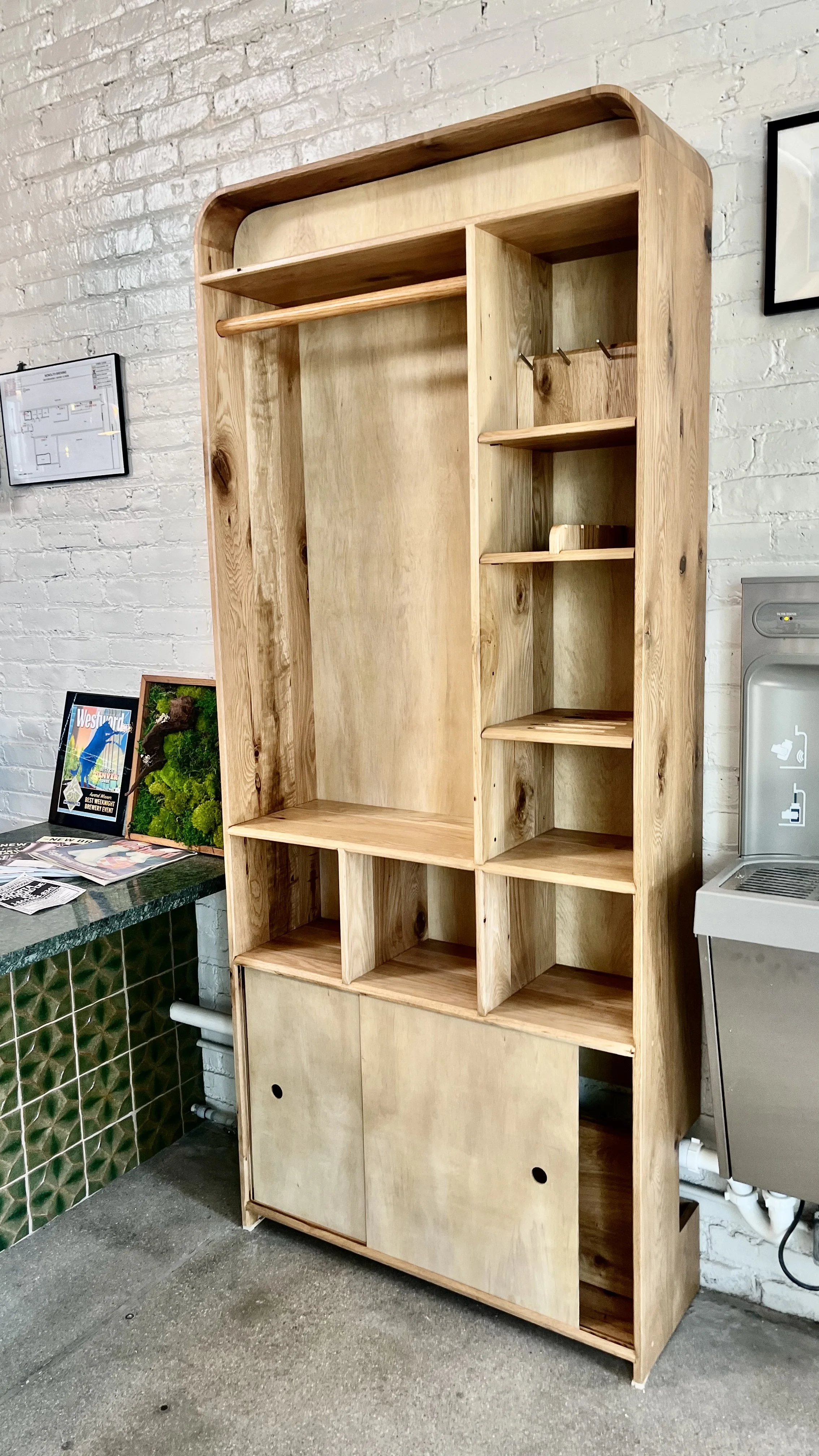 October 2024. Cherry, epoxy, teak oil. In lieu of a closet.